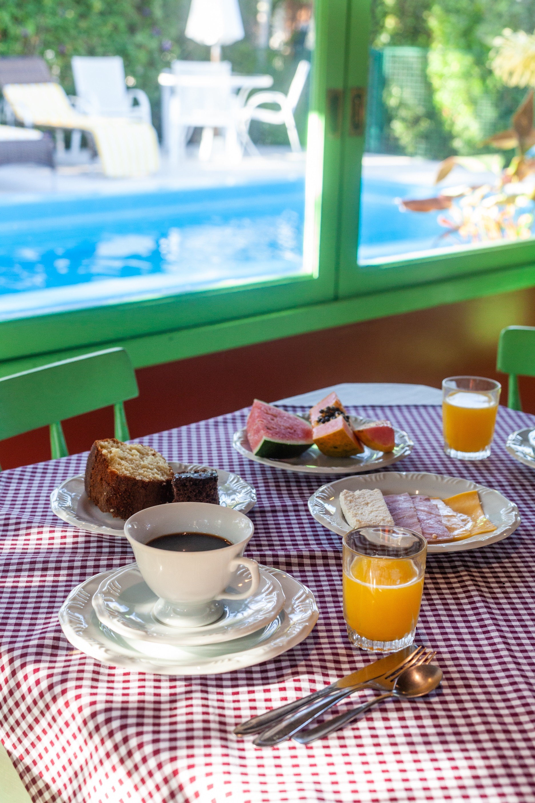 Além de tudo que os quartos oferecem, temos disponível estacionamento gratuito, área verde com piscina e muito mais.